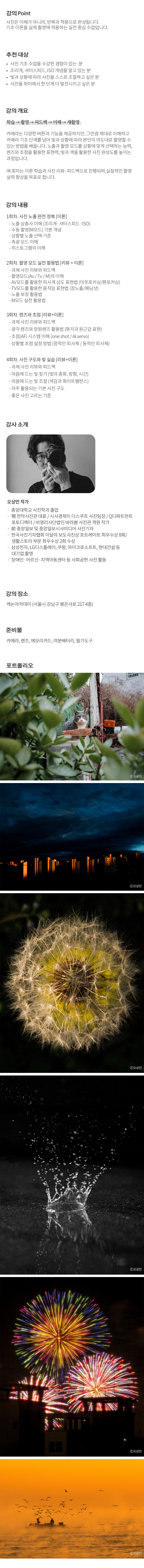 | 1차시 | 2026-05-06 10:30~12:30 | 중급사진 실전코스 : 반복과 적용 1/4 |