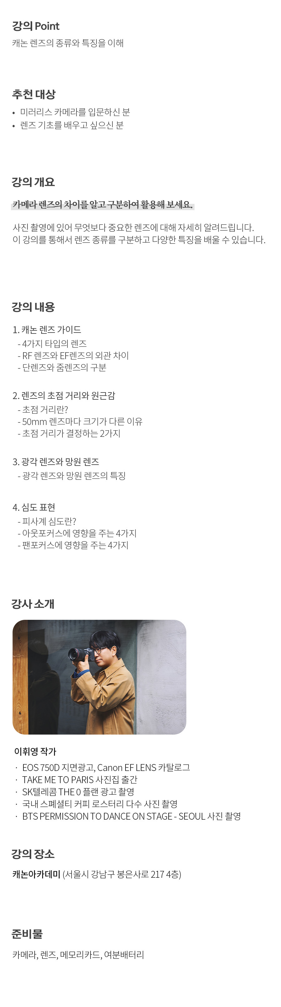 캐논 렌즈 가이드 [5월] 과정정보